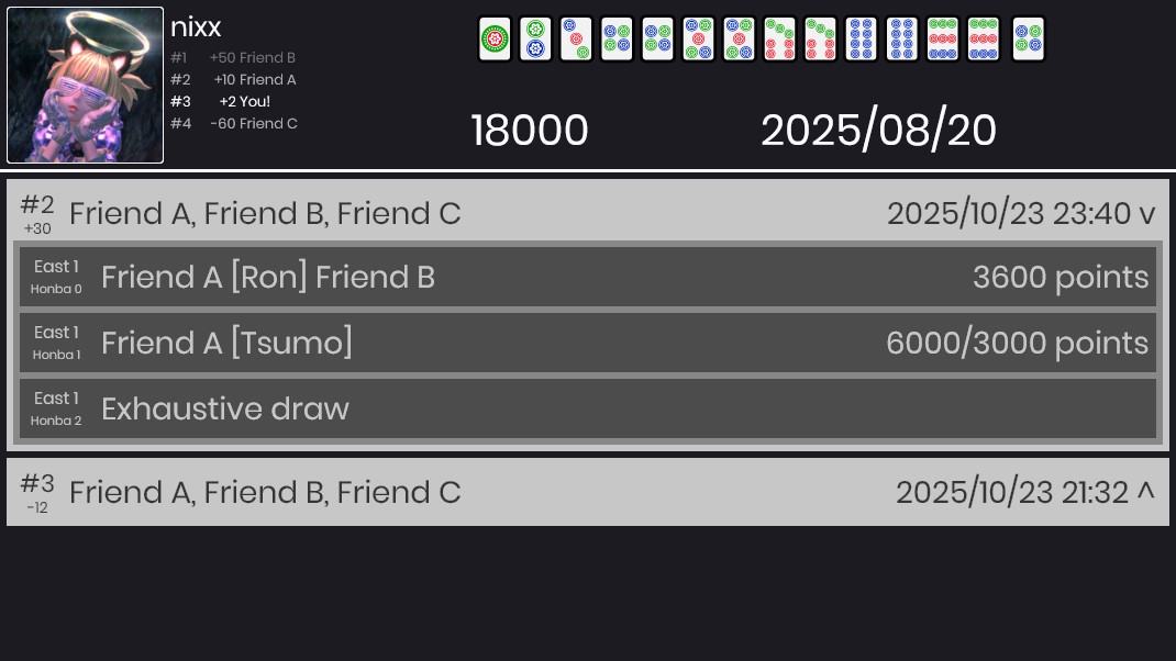 I made a public release of the game history feature when the list of games + hands was ready, but I still had a lot of work to do to make the individual Paifu visible. I also sorted out some side-objectives at that point, such as storing Paifu in folders and fixing the Game Id issue.